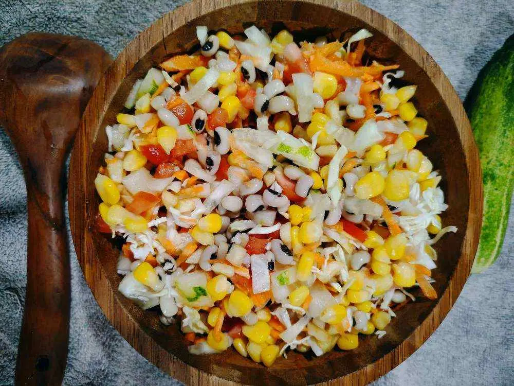 Vegetable salad can be made easily with fresh colorful vegetables, fruits and legumes. It is very healthy and are perfect